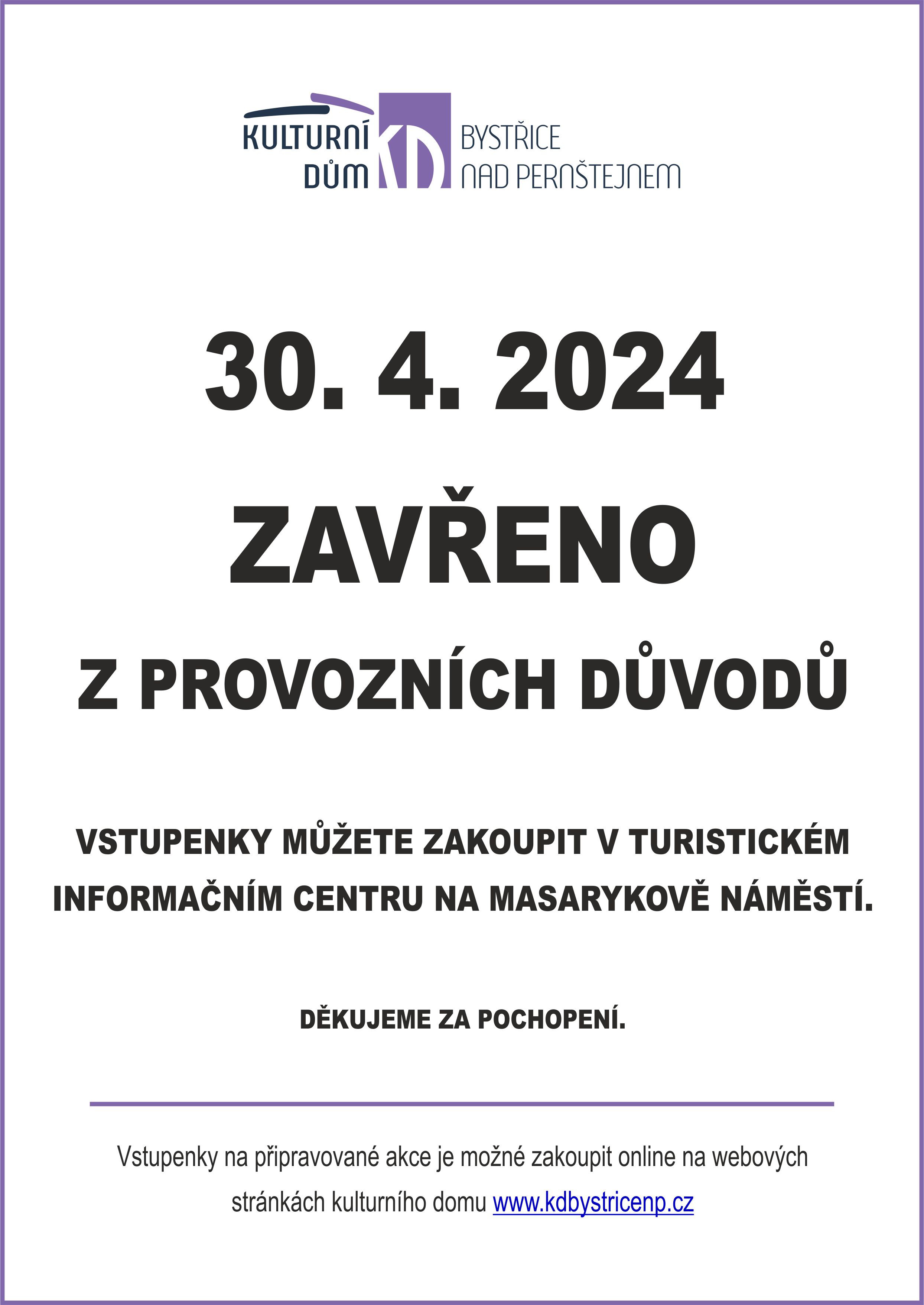 30. 4. ZAVŘENO